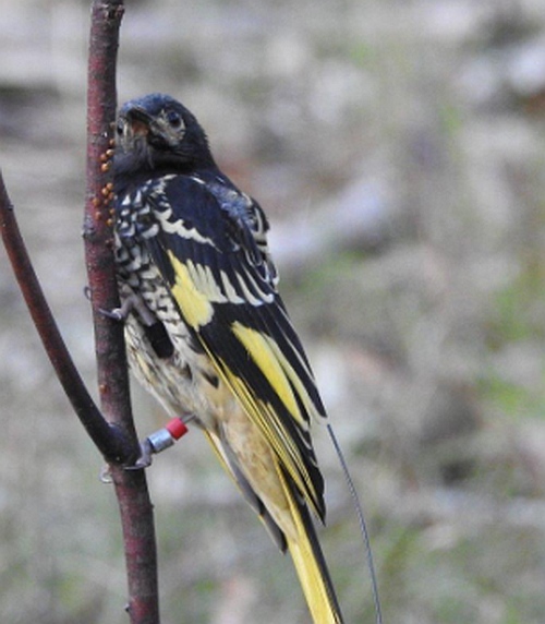 Regent Honeyeater with transmitter. Image: Greg Hardham.