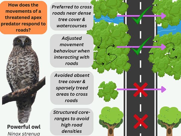 - How did the owl cross the road? Movement patterns and behaviour of a threatened apex predator - ScienceDirect 2025 paper on movement ecology of powerful owls associated with roads.
