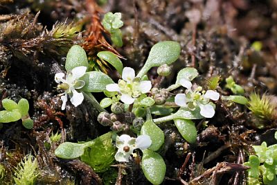 Close up image of Southern Shepherd’s Purse growing within moss mat. Image: Stan Wawrzyczek.