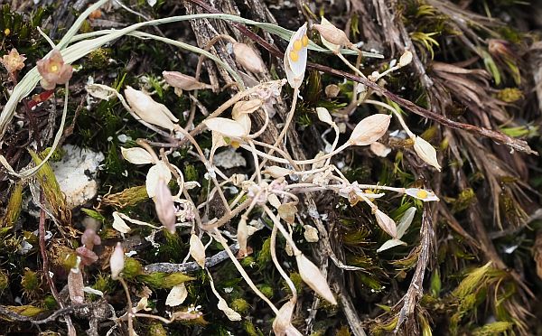 Close up image of Ballantinia antipoda  flower stalk, also supporting young fruits. Image: Stan Wawrzyczek.