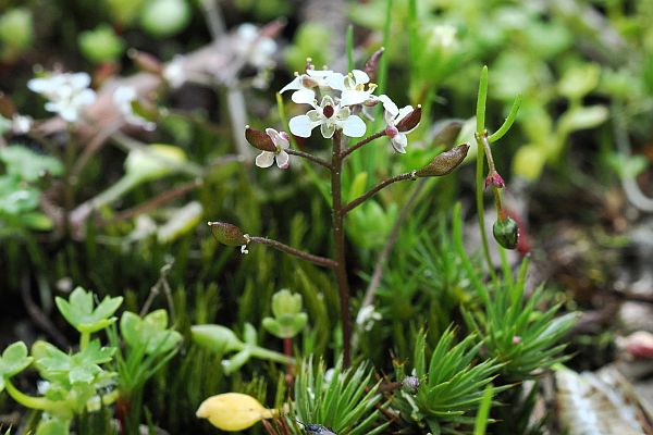 Mature fruits which are drying out exposing tiny yellow seeds. The seed crop is embedded in the thin layer of soil beneath the moss and can remain viable for several years. Ants have been observed to predate young fruit which may contribute to seed dispersal. Alternatively, the fruits (siliques) dehisce by early-October and the seeds drop with gravity or are washed down by rain. Image: Stan Wawrzyczek