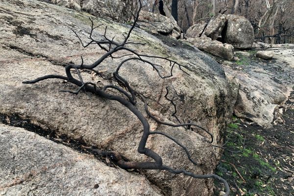 Above image shows the scorched remains of a dead Mount Cole Grevillea, a fate which impacted the whole population. Image: Steve Sinclair